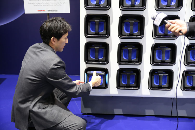 宮城:さきほどヤマハブースを見ていたのですが、あの電動バイクも似たバッテリーだったのですが、こちらのMobile Power Pack e(モバイルパワーパックイー)を使用しているのですか。