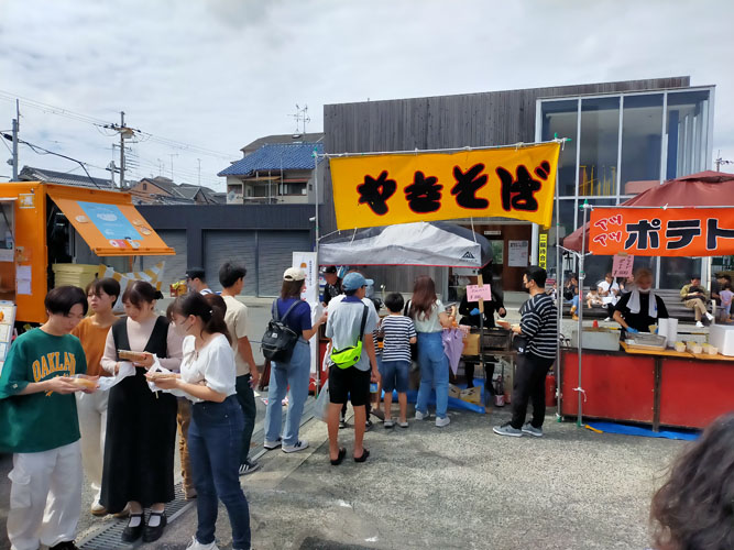 焼きそばやかき氷などの屋台やキッチンカーも出店しており、まるでお祭りのよう。気温が上がった午後にはかき氷に行列ができるほど!