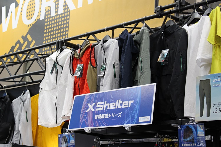 ブースでは人気の暑熱対策ウェア「X Shelter」シリーズをはじめとした各種商品の展示も行われていました。