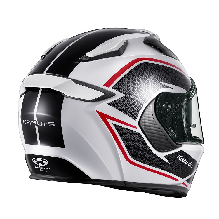 従来の紫外線カットに加え、ヘルメット内部への熱伝導を低減する赤外線カット素材を使用したシールドと大型インナーサンシェードを装備した、フルフェイスヘルメット「KAMUI-5(カムイ・5)★」に新たなグラフィックモデル「KAMUI-5 TORZA(カムイ・5 トルザ)」を追加します。