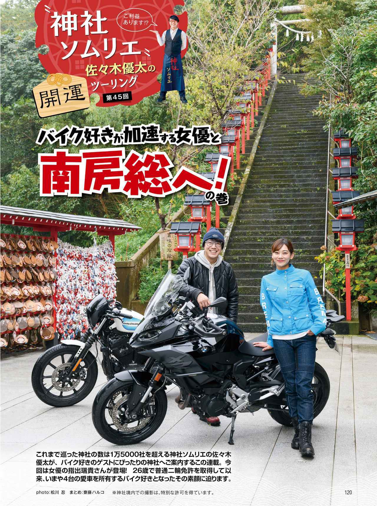 「神社ソムリエの開運ツーリング」ではゲストに女優の指出瑞貴さんが登場! バイク好きが高じて今や4台を所有する“バイク好き女優”の素顔に迫ります。海を愛する指出さんにぴったりな神社として向かった先は……? 気になる詳細は本誌をご覧ください。