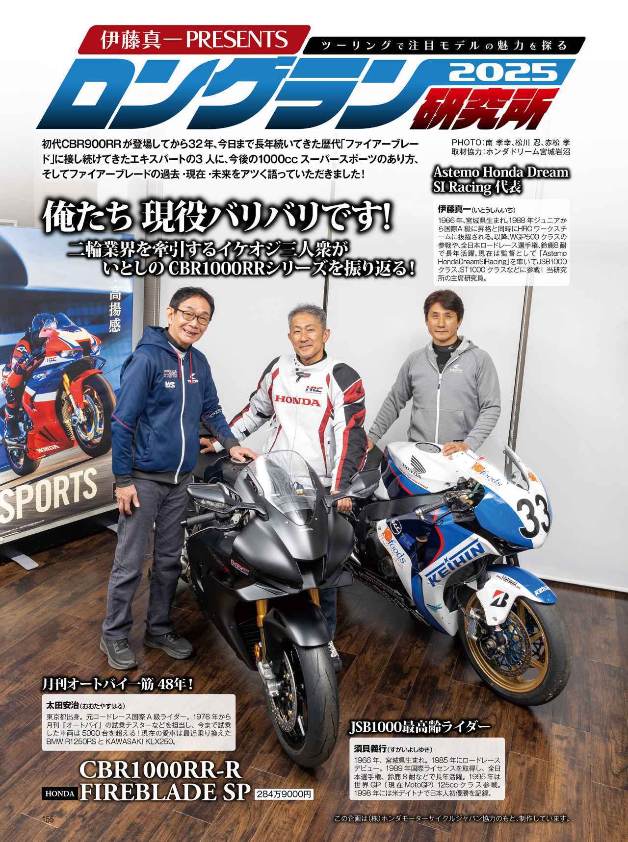 お馴染み伊藤真一さんの「ロングラン研究所」には、須貝義行さん、太田安治さんがゲスト参戦。ホンダ「CBR1000RR-R FIREBLADE SP」とともに、歴代のCBRや全日本ロードレースについてトークセッション!