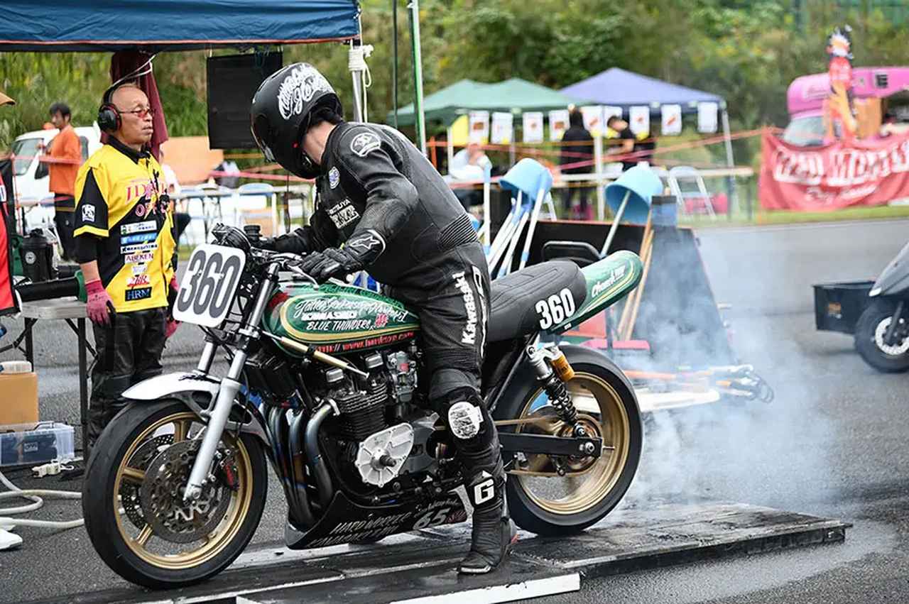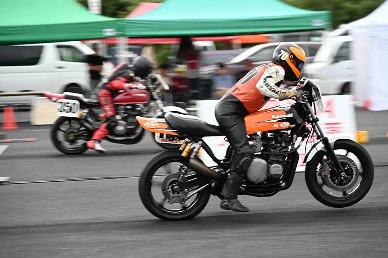 TOT(テイスト ・オブ・ツクバ)のモンスタークラス。1970~1980年代の空冷4気筒大型マシンが競う大人気クラスですが、その出場マシンがドラッグレースを走ったらどうなるか。実現しちゃいました。独特なテクニックが必要なドラッグレースゆえに、TOTの結果がそのままスライドしないのが興味深いところ。奥が深いのです。果たして優勝を飾ったライダーとマシンは?