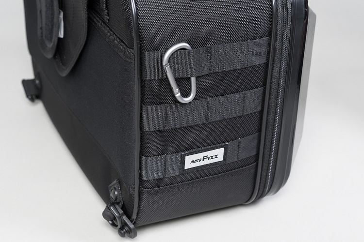 側面に設けたPALSテープにカラビナや市販のMOLLEポーチ等を自由に取り付けられます。