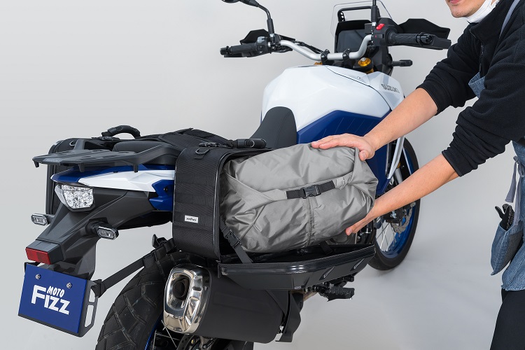ネオプレン生地がシートカウルの凹凸を吸収し、バッグを車両にぴった
