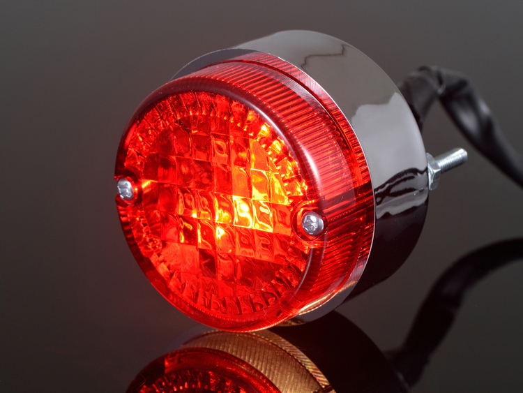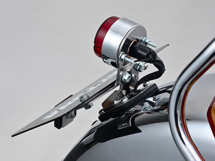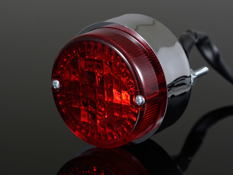 丸形の小型ムーニーテールランプをすっきり取り付け。テールランプベースは純正リアフェンダーのR形状に合わせた専用品です。