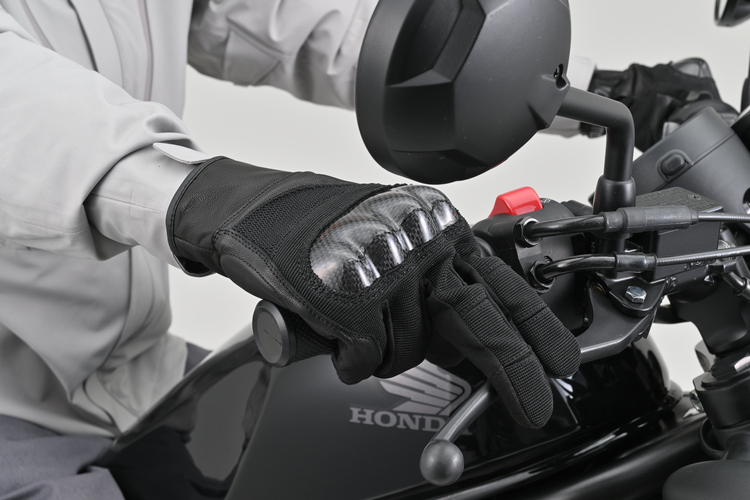軽快な操作感と高い防護性能を両立したメッシュグローブ。高強度カーボンナックルプロテクターを搭載しながら、全体に高通気ストレッチナイロンを採用することで、暑い季節でも蒸れにくく快適な着用感をキープ。手の動きにスムーズに追従する軽さと柔軟性を持ちながら、衝撃保護もしっかり確保します。通気性の高い素材配置により、走行風と気化熱冷却が相乗して手元を快適に保ち、長時間のライディングでも快適。さらに、手の平には本革を採用し、摩耗しやすい箇所にはシリコンプリントでグリップを強化。疲労を軽減し、操作性を高めています。安全性・通気性・フィット感をバランスよく備え、街乗りからロングツーリングまで幅広く対応。