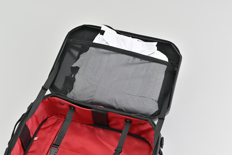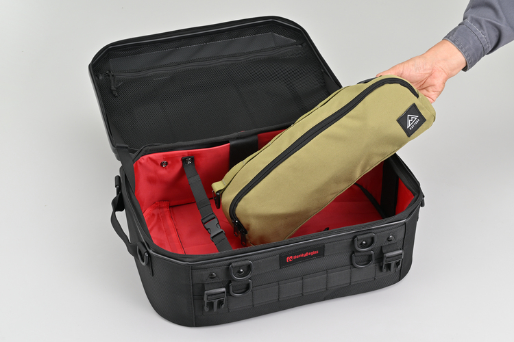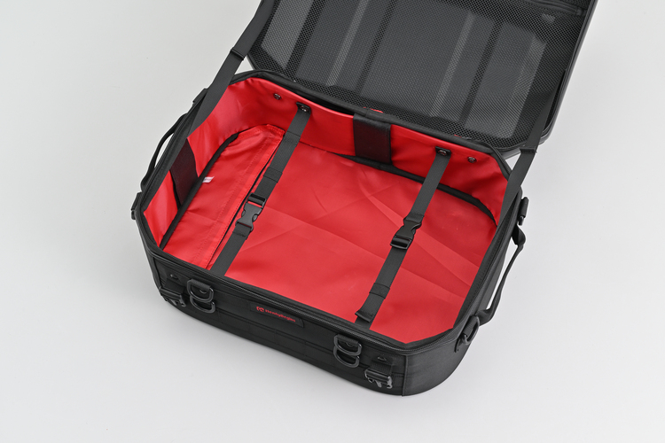 シンプルなデザインのシェルは軽量ながら十分な強度を確保。バッグ部分は頑丈な芯材や変形防止の連結ベルトなどで美しいフォルムを保つHenlyBeginsバッグのデザインを踏襲。使い勝手のいいパルステープには後付けでポーチ等が装着可能です。バッグ底面のノンスリップシートは、シートの小さなスーパースポーツでもバッグの前ズレを防ぎ、イージーリングベルトで簡単・確実・きれいにバッグを固定できます。気軽に使える日帰り~1泊サイズ。