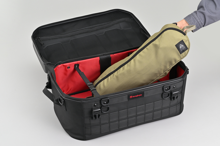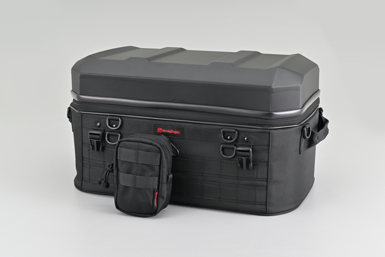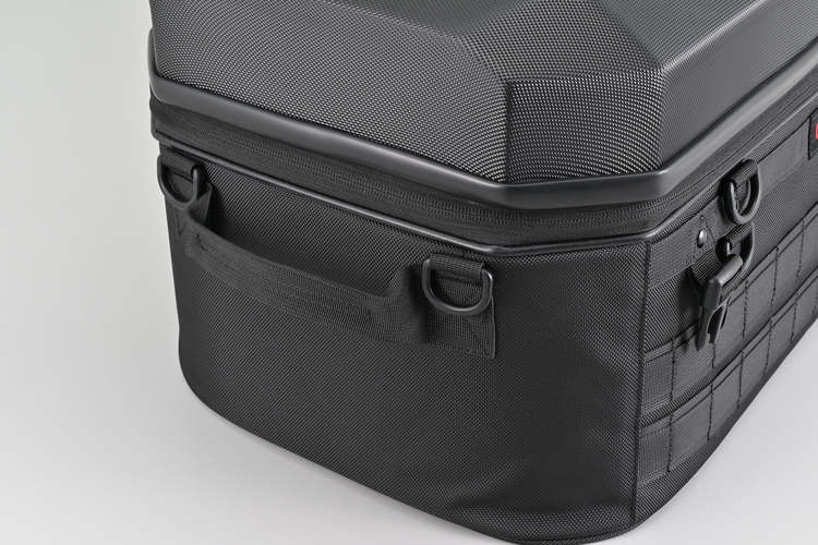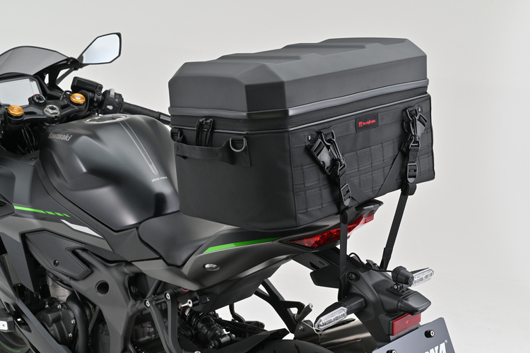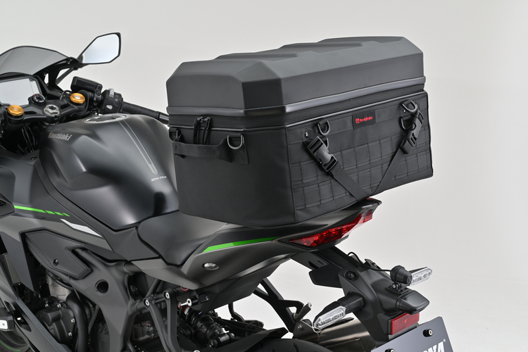 シンプルなデザインのシェルは軽量ながら十分な強度を確保。バッグ部分は頑丈な芯材や変形防止の連結ベルトなどで美しいフォルムを保つHenlyBeginsバッグのデザインを踏襲。使い勝手のいいパルステープには後付けでポーチ等が装着可能です。バッグ底面のノンスリップシートは、シートの小さなスーパースポーツでもバッグの前ズレを防ぎ、イージーリングベルトで簡単・確実・きれいにバッグを固定できます。ロングツーリングやキャンプ泊に対応。容量たっぷり45Lタイプ。