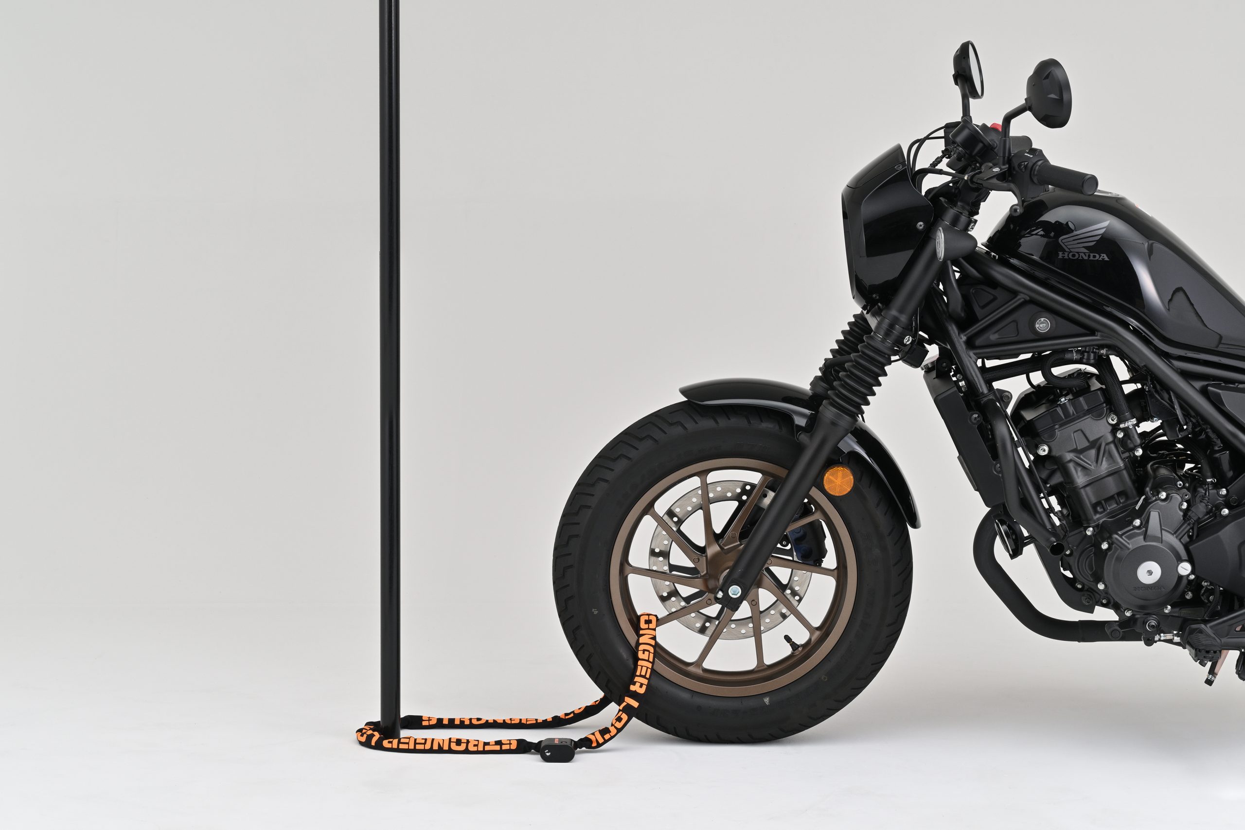 焼き入れ加工を施したスチール合金チェーン。従来モデルと同等の強度を保ちながら、Φ6mmのチェーンを使用することで軽量化を実現しました。軽くて持ち運びやすく、ツーリング時の携帯にも最適です。ロック本体は金属製ボディを樹脂カバーで覆い、車体を傷つけにくい安心設計となっています。