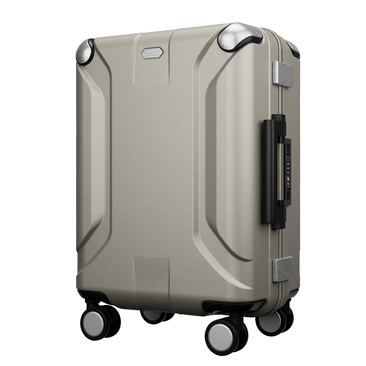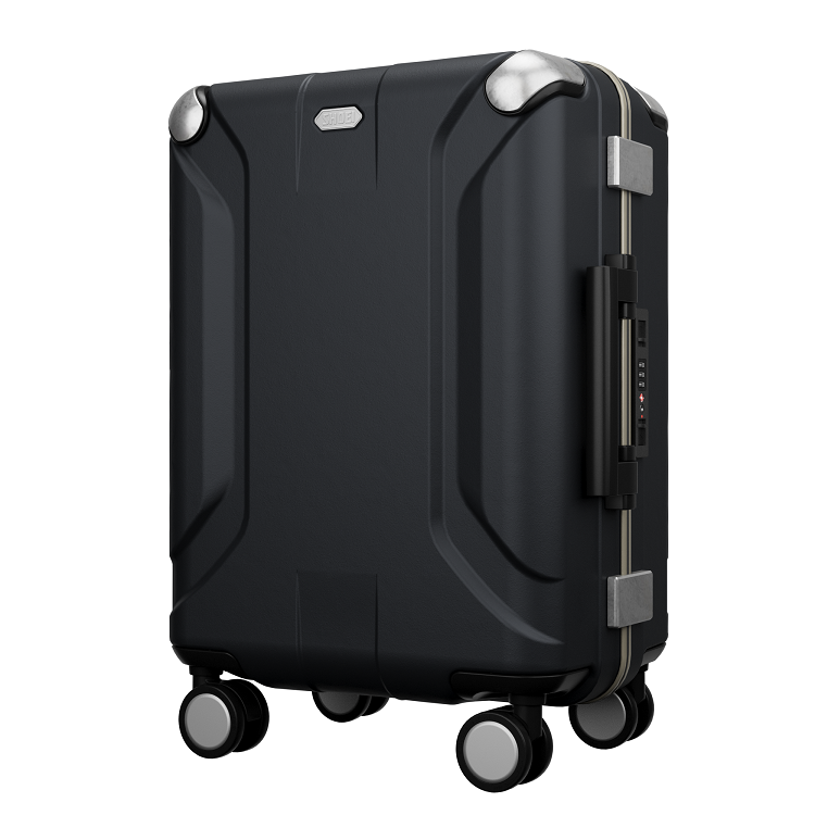 コーナーガードとロゴはアルミで高級感を演出。ビジネスでも旅行でも使いやすいシンプルで上質なデザイン。