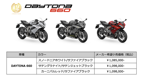 製品サイト:https://www.triumphmotorcycles.jp/bikes/sport/daytona-660/daytona-660-2024