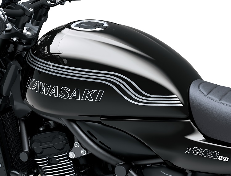 ・タンクのKAWASAKIロゴは、スタンダードモデルの立体エンブレムとは異なり、Z900RS CAFEのイメージに合わせて滑らかな転写フィルムで表現