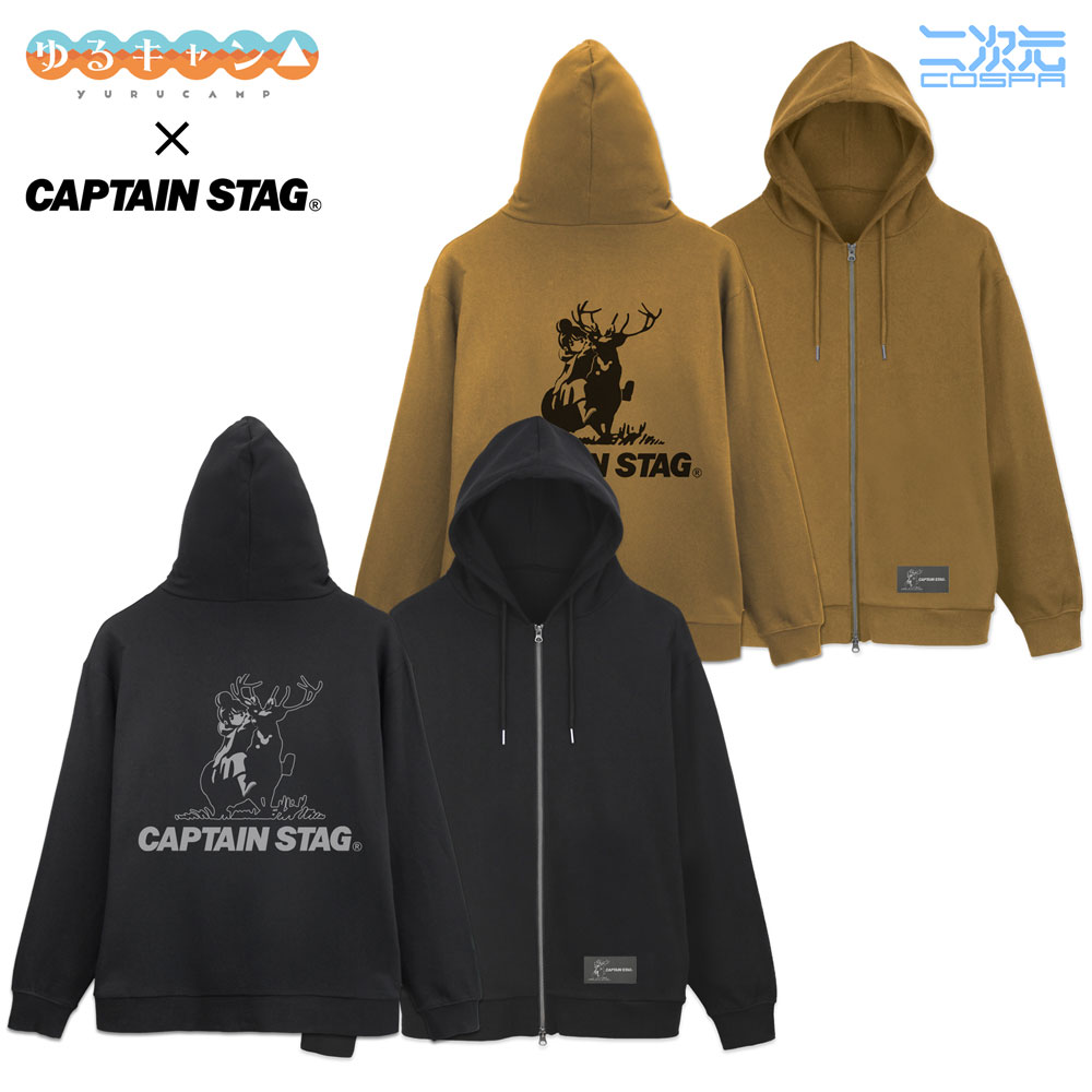 1976年設立のアウトドア総合ブランド『キャプテンスタッグ』のロゴでおなじみの『牡鹿』に、『志摩リン』がまたがる特別なロゴをデザインした「ジップパーカー」や「Tシャツ」などコラボ新グッズが二次元コスパから登場です。