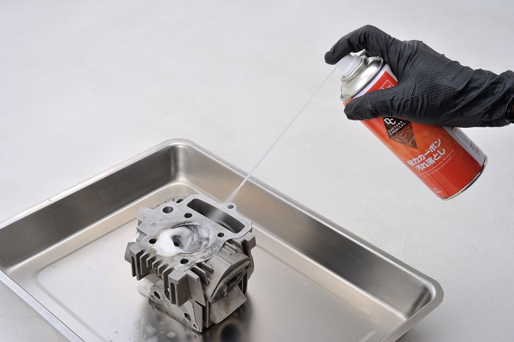 使用後エンジンやマフラーに固着したカーボン・スラッジを溶解して除去