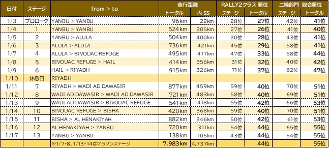 ダカール・ラリーは、世界で最も過酷なモータースポーツと称される大会です。今大会においても、ステージ2での大きな転倒による眼窩底骨折、ステージ5でのクラッシュによる鎖骨骨折など、数々の困難に直面しました。多く多く転倒しました。一時は、ドクターから「継続走行は困難」と告げられる状況でもありました。
