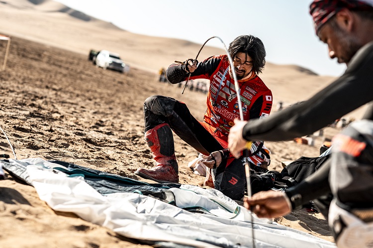 藤原は3ヶ年計画で「ダカール・ラリー」参戦権獲得と、同大会を走りきるために必要なライディングスキルの習得に取り組んできました。その成果はスタート直後から如実に現れましたが、同時に「今の走行ペースを10%上げたら、途端にヤバい世界に入って生きて帰れないかもしれない」(藤原)とも感じていました。
