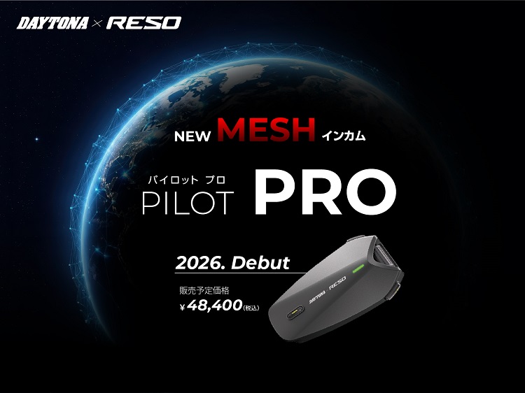 株式会社デイトナ(静岡県周智郡森町一宮4805 代表取締役 織田哲司、以下「デイトナ」)は、世界初のデュアルチャネル・メッシュ技術「DuoSync™デュオシンク)」を搭載したバイク用インカム「RESO PILOT PRO」を、大阪・東京・名古屋モーターサイクルショーで初公開します。