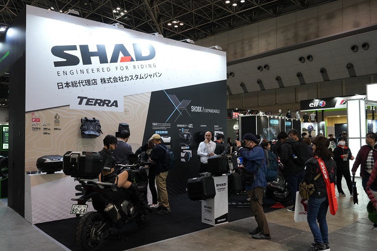 2. SHAD(シャッド)ブース: デザイン性と機能性を兼ね備えたトップケースを展示。「欲しいモデルが当たる」投票キャンペーンを実施。
