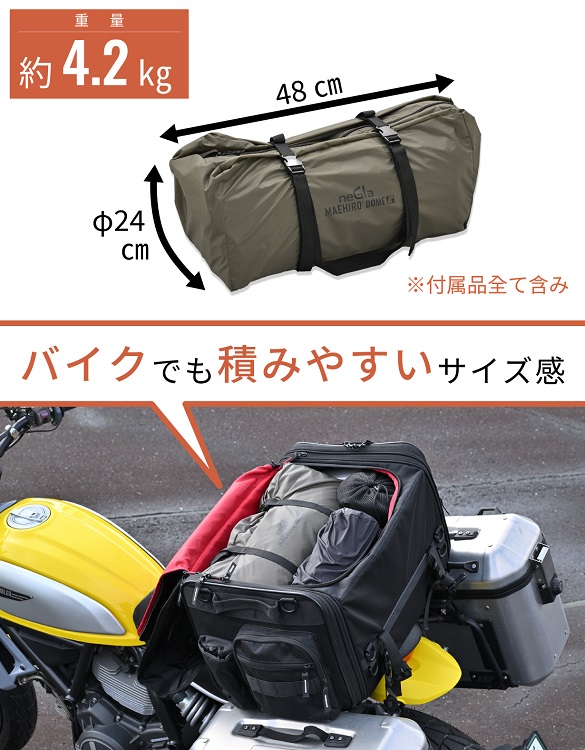 バイク乗りのための最初の一張りに。広々前室の開放感と納得の品質を両立したツーリングテント『MAEHIRO DOME E(マエヒロドーム イー)』新登場。