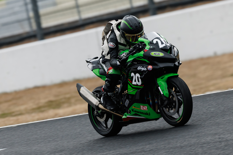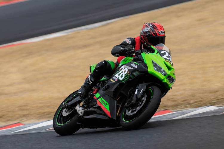 もともと妻がNinja ZX-25Rを所有してたのですが、大型二輪免許を取得してステップアップしたことで、そのNinja ZX-25Rが手元に残っていました。そんな中、昨年岡山国際サーキットで開催された全日本ロードレース選手権を観戦しに行き、カワサキプラザブースで展示されていたNinja Team Green Cup仕様のNinja ZX-25Rを目にしました。そこでプラザスタッフの方から詳しく話を聞き、「それなら家にあるNinja ZX-25Rで挑戦できるかもしれない」を思ったのがきっかけです。その後、近くのカワサキプラザを探して相談し、同じカワサキプラザに通うお客さんと一緒に出場することになりました。