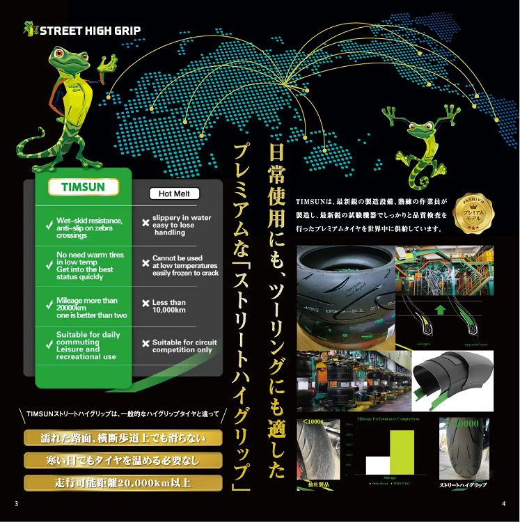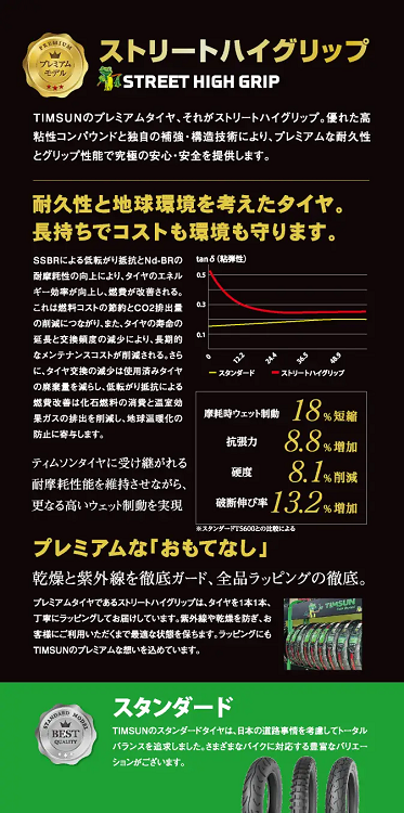 TIMSUNのストリートハイグリップシリーズは、こうした日本の使用環境に適した性能を備えています。