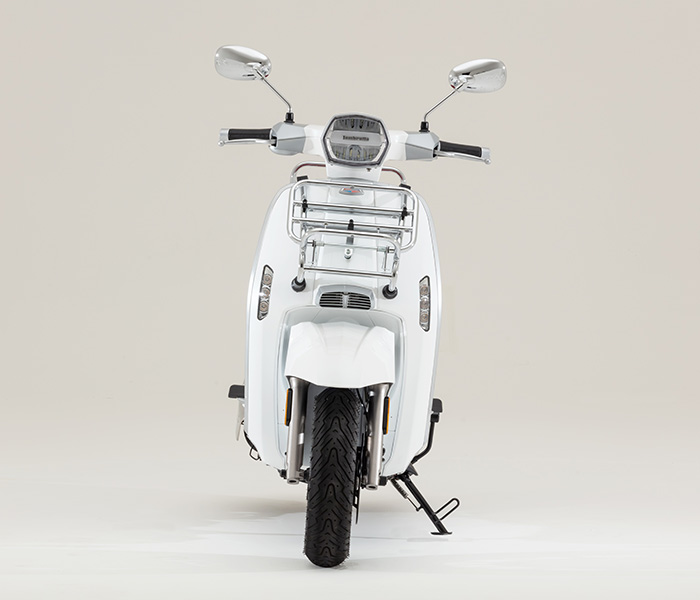 新生ランブレッタの旗艦となるのがV200 Specialだ。1958年から製造されたLIシリーズや、TVシリーズを彷彿とさせるリヤが長いフォルムは、まさにランブレッタそのもの。灯火類は全てLEDとし、各部に現代的なデザインを融合することで実にモダン&高級感溢れる仕上がりとなっている。車体は伝統のスチールモノコック形式を踏襲。質感と剛性感が高く、車重が重くならないよう鋼板の配置とデザインを最適化している。共通ボディで125cc版と50cc版が用意されるのもうれしい。