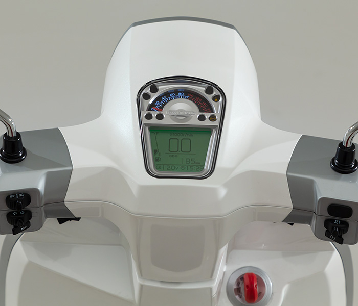 液晶メーターやUSBソケットは全車標準。シート下にヘルメットが収納できるトランクを確保し、ラゲッジフックやグローブボックスなど実用性も十分だ。