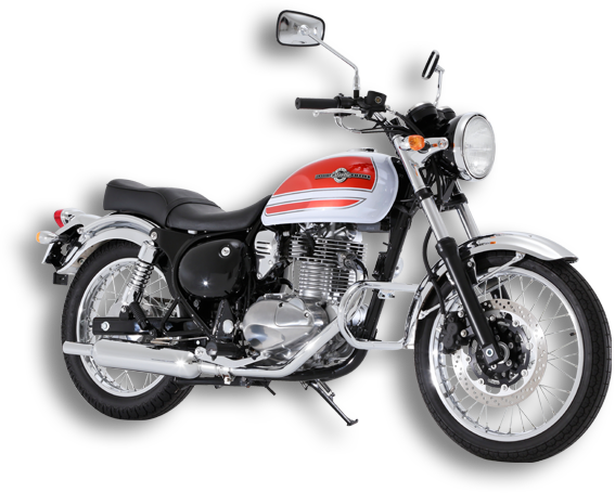 ――1990年代に入ると、性能を重視したレーサーレプリカに代わり、シンプルながら味わい深いネイキッドが一大ブームを迎える。ゼファーで、その先陣を切ったカワサキは、1992年、250ccクラスにもクラシカルな「エストレヤ」を送り込む。ライダーに絶賛されたのは、懐かしくもモダンなデザイン。流線的な外装に、バフがけを施した249ccの空冷単気筒SOHC2バルブと各部のメッキパーツが見事な調和を見せている。スペイン語で「星」を意味する車名のとおり、輝きを放ち、存在感のあるモデルとして、多くの支持を受けた。