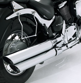 イントルーダーのネーミングは歴史が古く、初代は1985年のVS700GLイントルーダーにまでさかのぼる。伝統の車名を受け継いだイントルーダー400は、国内アメリカンブームが最高潮の1993年にデビュー。後継モデルのデスペラードを経て、2001年にイントルーダークラシック400が誕生した。先代のスマートなイントルーダーとは全くの別物で、イントルーダークラシック800と共通のシャーシを採用。そのため、2500mmオーバーの全長や1655mmのホイールベースは400クラス最大を誇り、リッターバイクと見間違えるほど巨大だ。一方、操縦性は驚くほど軽快で、275kgの装備重量を全く感じさせない。