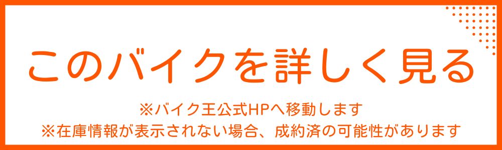 ※車両本体価格以外に諸経費が発生します。詳しいお見積りはご来店いただくか、バイク王公式HPよりお問い合わせください。