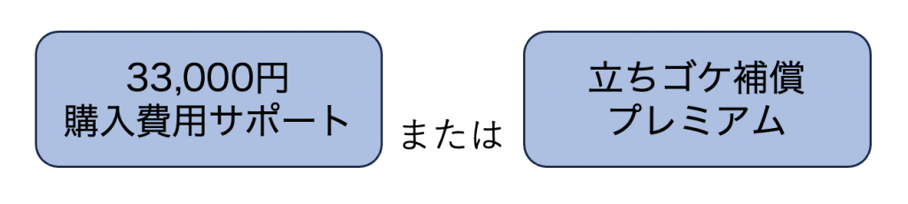 バイク購入に対し負担を軽減する「33,000円購入費用サポート」と購入したばかりのバイクに慣れるまでの不安な期間をサポートしてくれる「立ちゴケ補償プレミアム」。