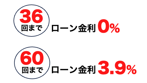 - 【ローン金利3.9%】は60回まで。支払回数が61回以上の場合は対象外。