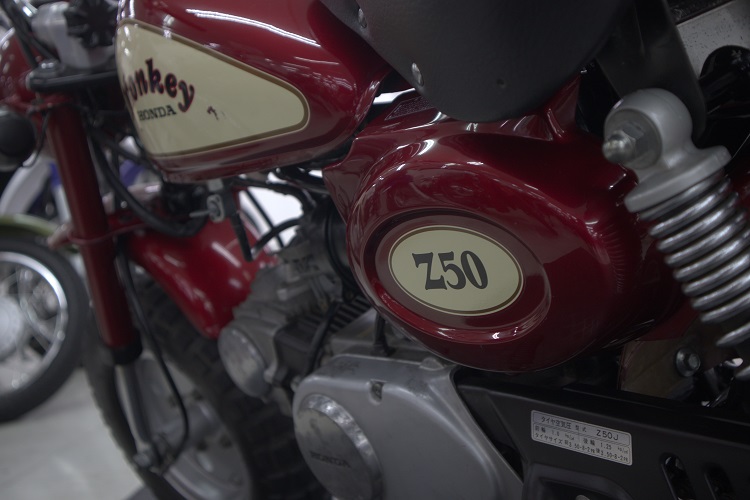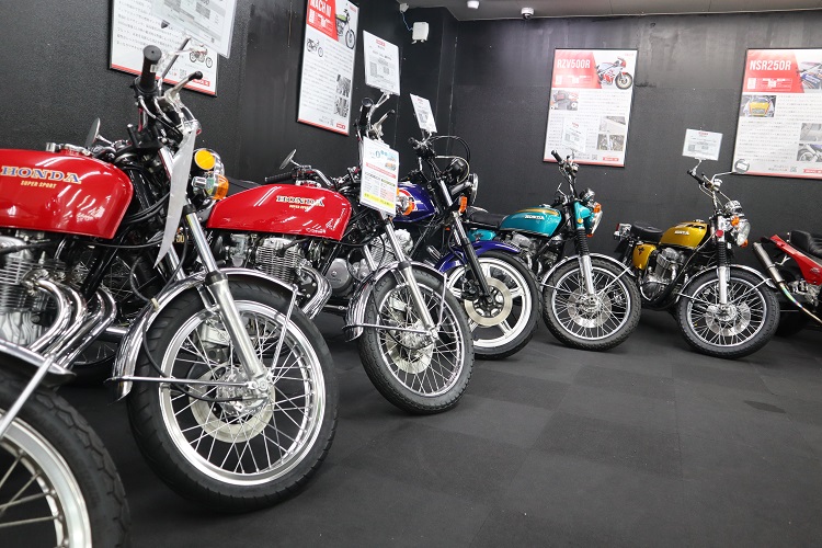 マットが敷かれた奥の空間にはCB750Four・Z1・Z2等の王道の絶版車のコーナーが置かれ、壁には絶版車解説のパネルも貼られていて本当に博物館や展覧会のようです。