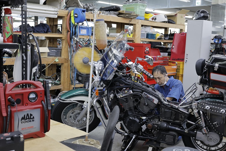 絶版車は新しいバイクに比べて整備・点検やパーツ交換を行う箇所が多くなりますが、絶版車館には広いピットが用意され、バイク王の中でも特に絶版車の知識・スキルが豊富な整備士が配属。