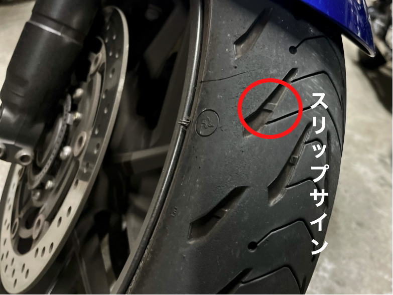 スリップサインは溝の深さが0.8mmに達している、あるいはそれを下回ることを知らせるものです。