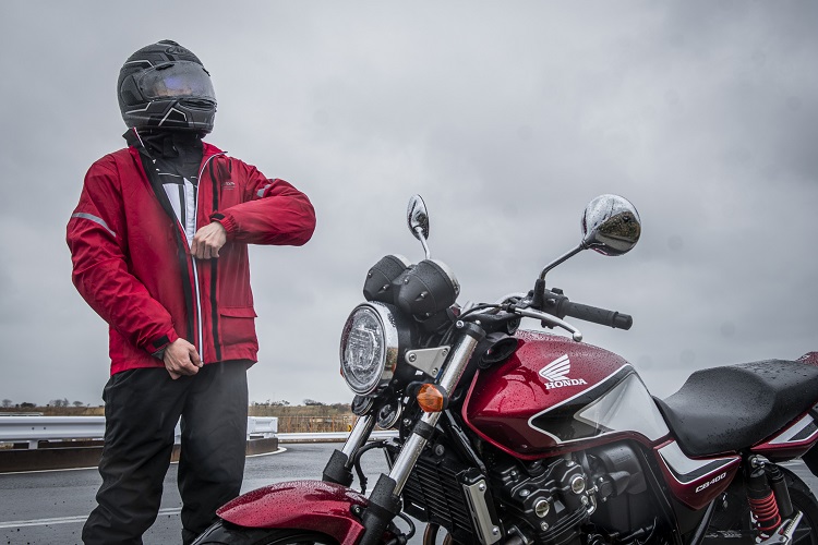 バイクは走行中に常に風を受けるため、一般的なレインウェアよりも高い防風性が求められます。