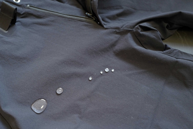 主な仕組みは生地による遮断。生地自体に防水性の素材を使用、もしくはコーティングを施したり縫い目をシーリングすることで水の侵入を防ぎます。