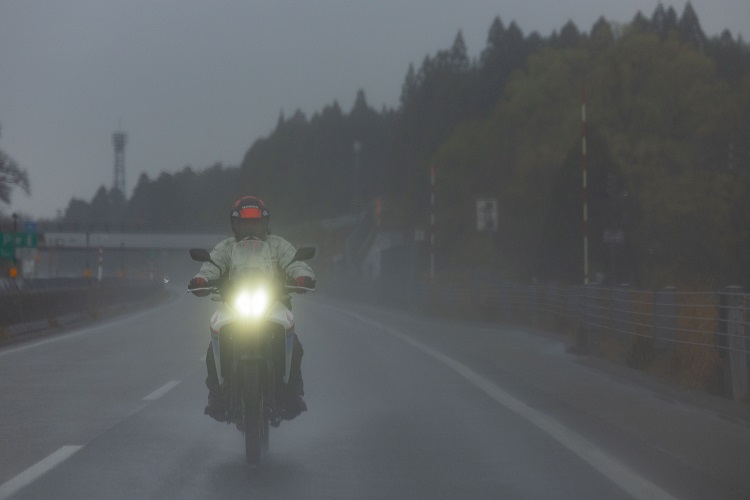 雨天走行時は自分だけでなく周囲のライダー・ドライバーの視界も悪くなり、夜間走行には注意が必要です。