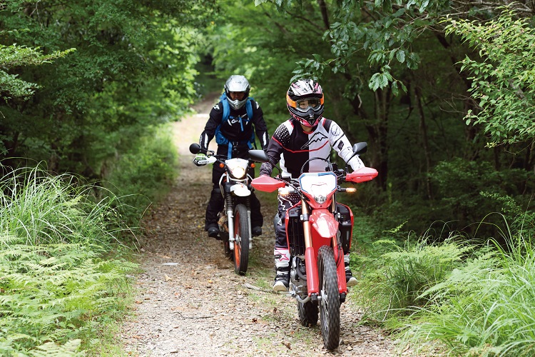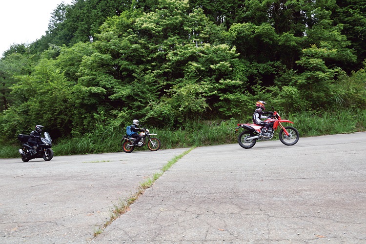 林道の場合、基本道幅が狭いので、十分な車間距離を取って1列で走る。