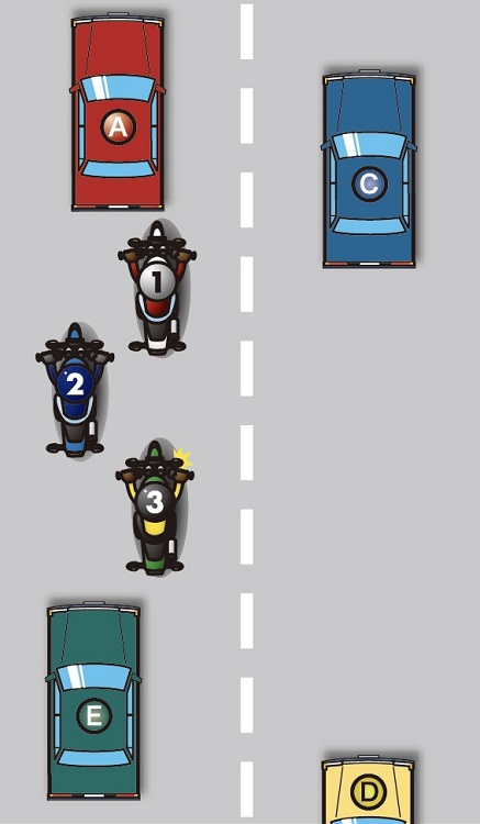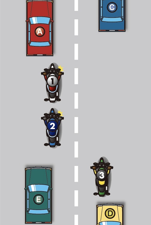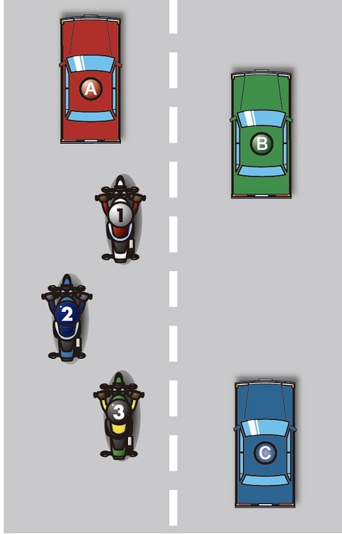 そのため、前走車が後ろのライダーとの距離を確認しやすくするために、左右にオフセットして走るのだ。