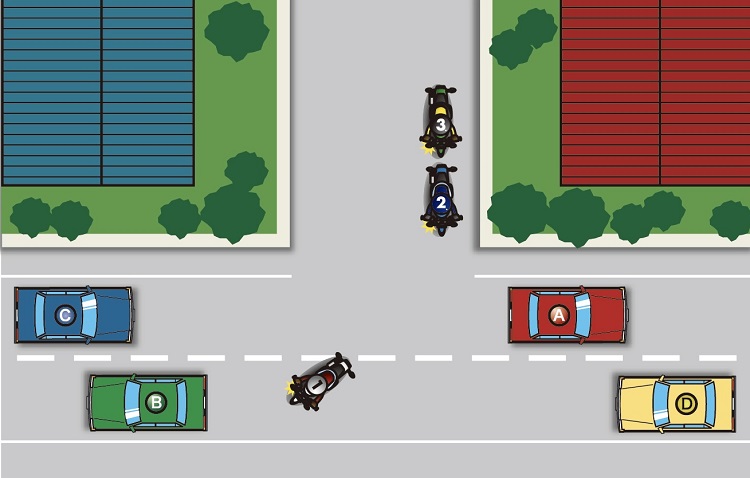 前走車と離れても無理して付いて行こうとすると、転倒のリスクが一気に高まるので、自分のペースを最優先すること。