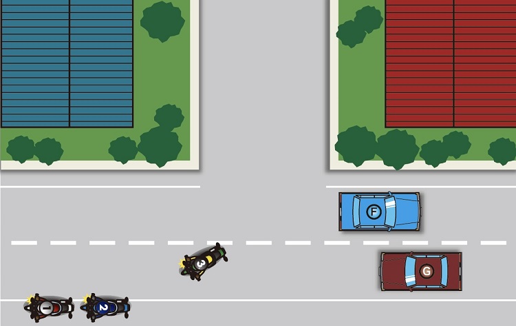 先導者は曲がってから後続車が追いつくのを待つようにすれば、トラブル発生のリスクを抑えられる