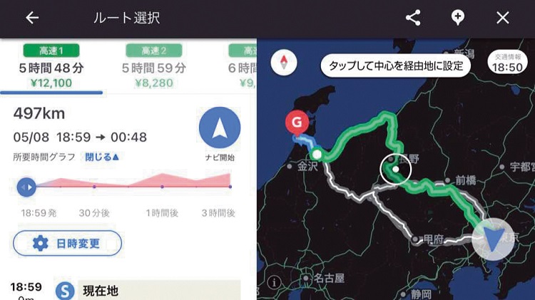ナビアプリを使えば到着予定時刻はわかるが、そのとおりに進むことはまずない。