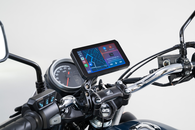 ツーリング時はスマホホルダーを取り付けてナビゲーションアプリで道案内するのが一般的ですが、スマートライドモニターはスマホと無線接続することでナビゲーション機能を使うことができ、アプリ画面の表示や操作が可能になります。