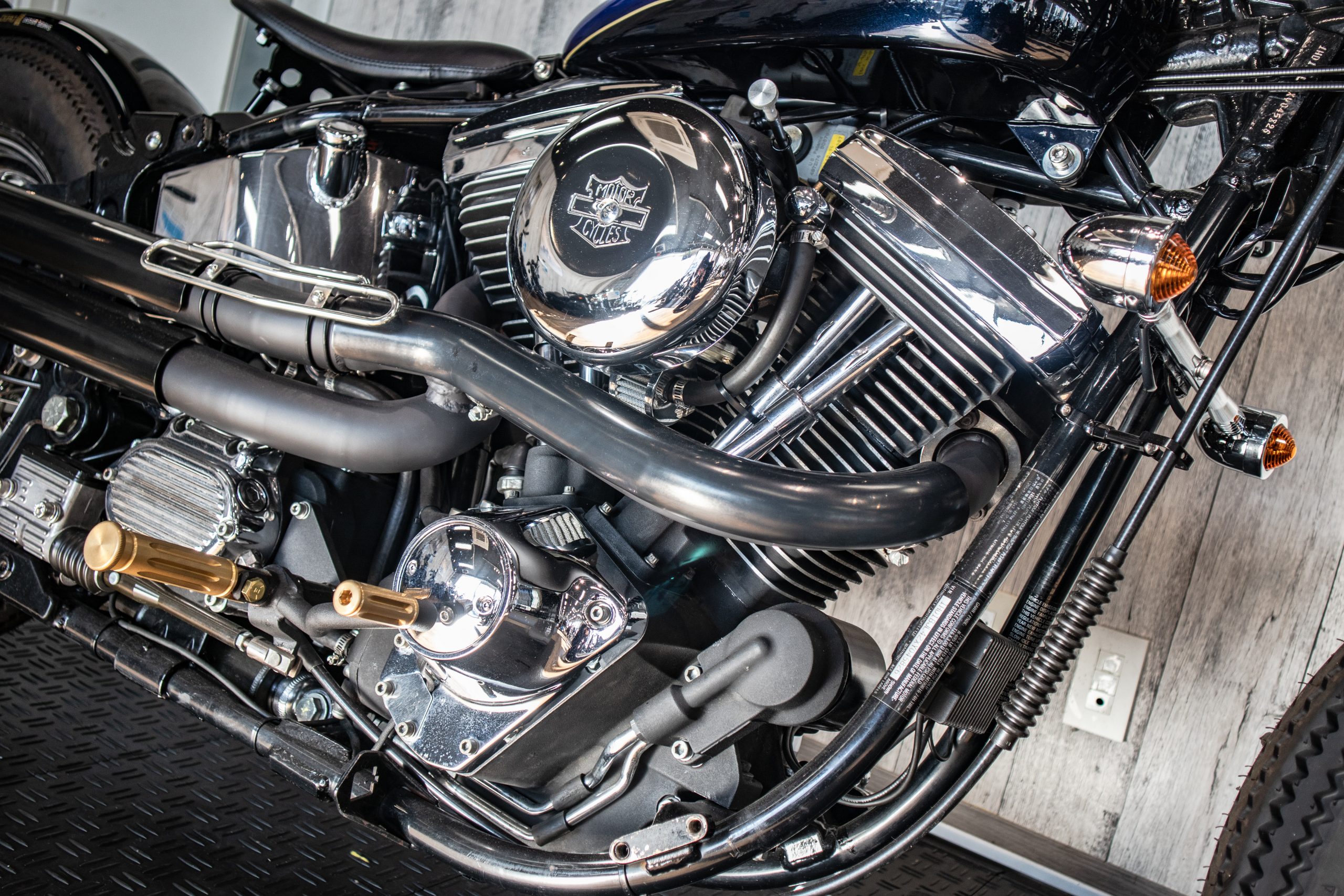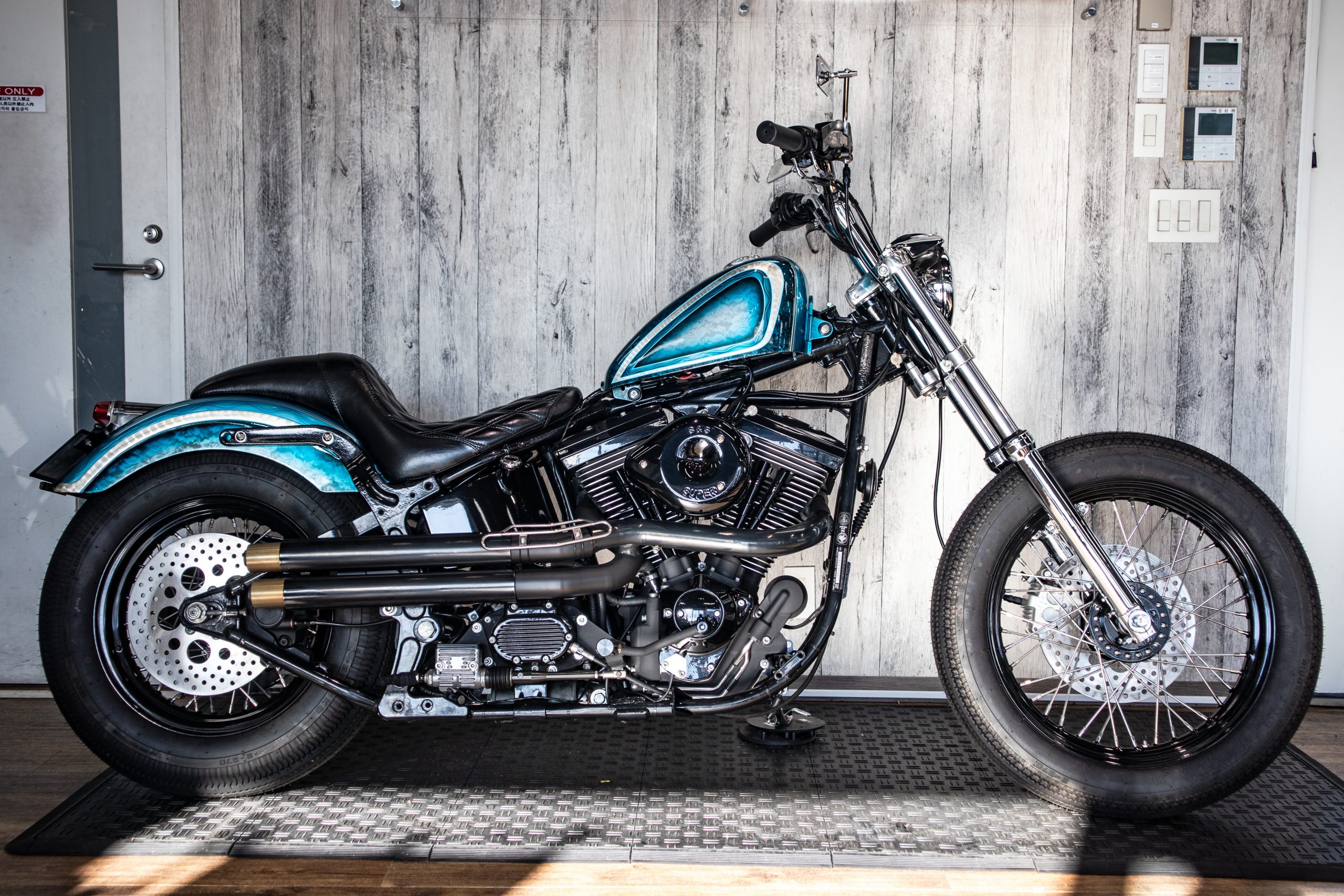 リアサスペンションを内側に隠すソフテイルのフレームはロードホッパーのリジットスタイルを表現でき、乗り心地も向上しています。