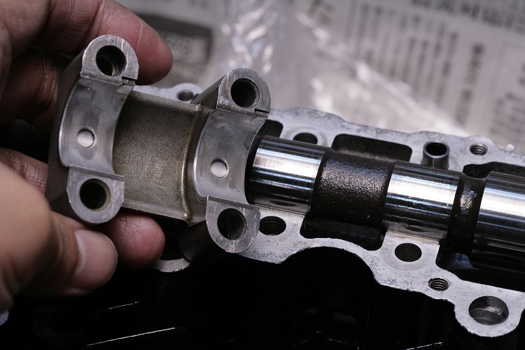 カワサキゼファーχのカムシャフトホルダーは4本のボルトでカムジャーナルを押さえている。4本の締め付けトルクにバラつきがあれば、ジャーナル部分にフリクションロスが発生する恐れがあるため、メーカーが指定する締め付けトルクで締めるのが望ましい。