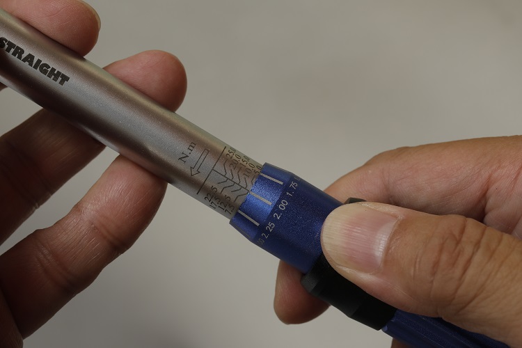 確認のつもりで複数回カチカチとやると、最初に測定したトルク値よりも実際の締め付けトルクが大きくなります。トルク上昇の割合はレンチの測定範囲や製品によってまちまちですが、10%以上強く締め付けられる例もあります。これではトルクレンチを使って締め付ける意味が薄れてしまうので、1回のクリックで測定を終了しましょう。