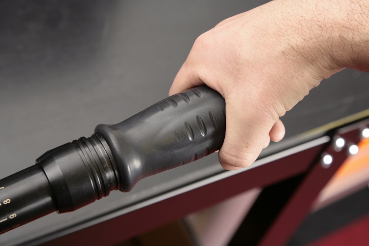 中心を外して握ると、カチッという通知と実際の締め付けトルクに差異が生じる場合がある。中心より後端部を握ると回転中心=ネジに伝わるトルクが大きくなるため、設定値よりも実際には低いトルクで通知されてしまう。