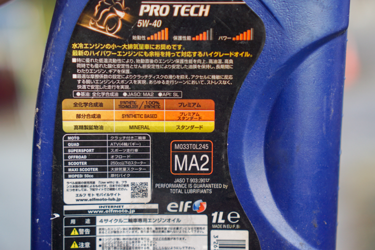バイクは車と違ってエンジンオイルがクラッチにも回っているため、湿式クラッチを備えたスポーツバイクやネイキッドバイクなどにはMA規格のオイルが一般的です。